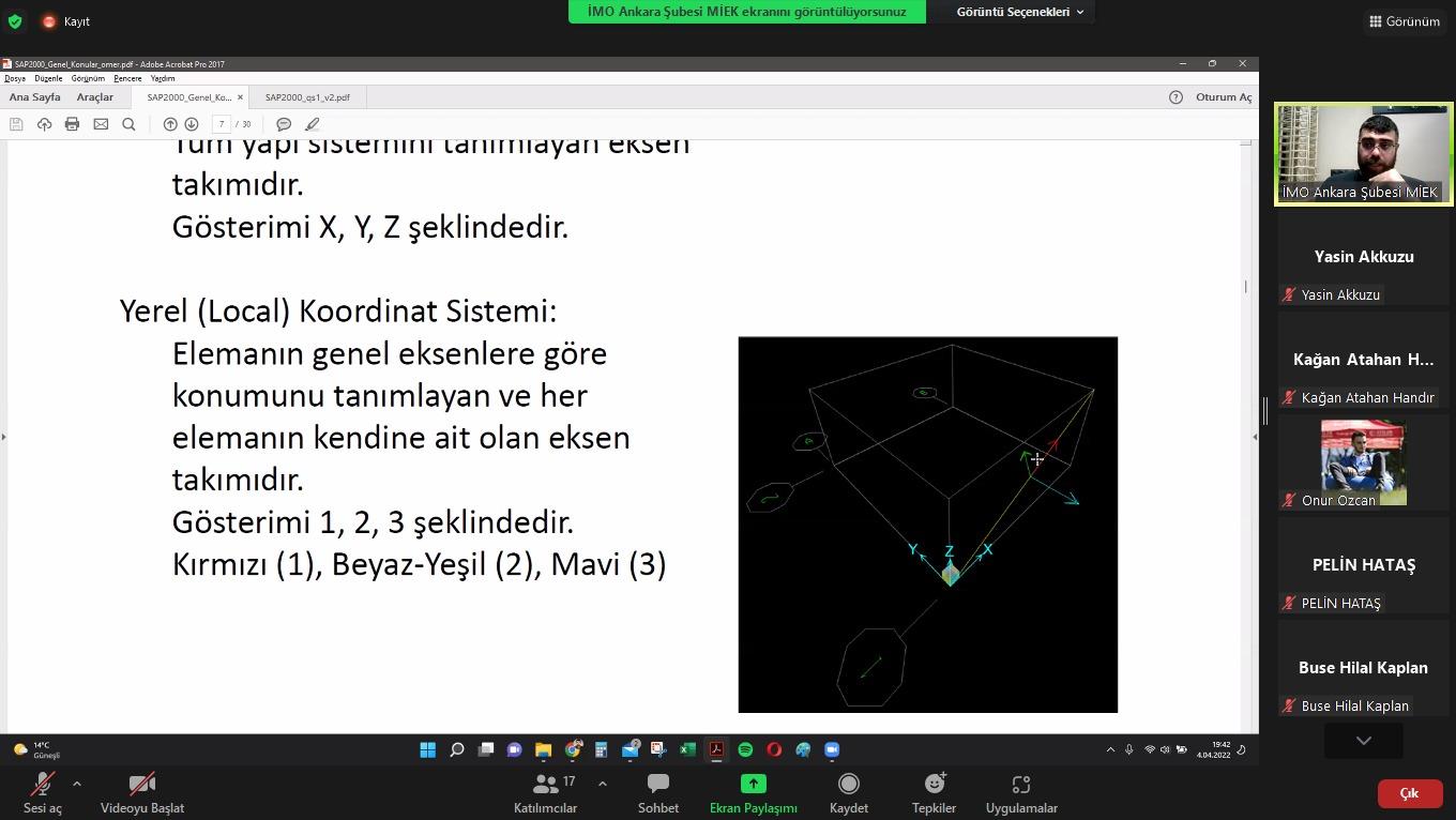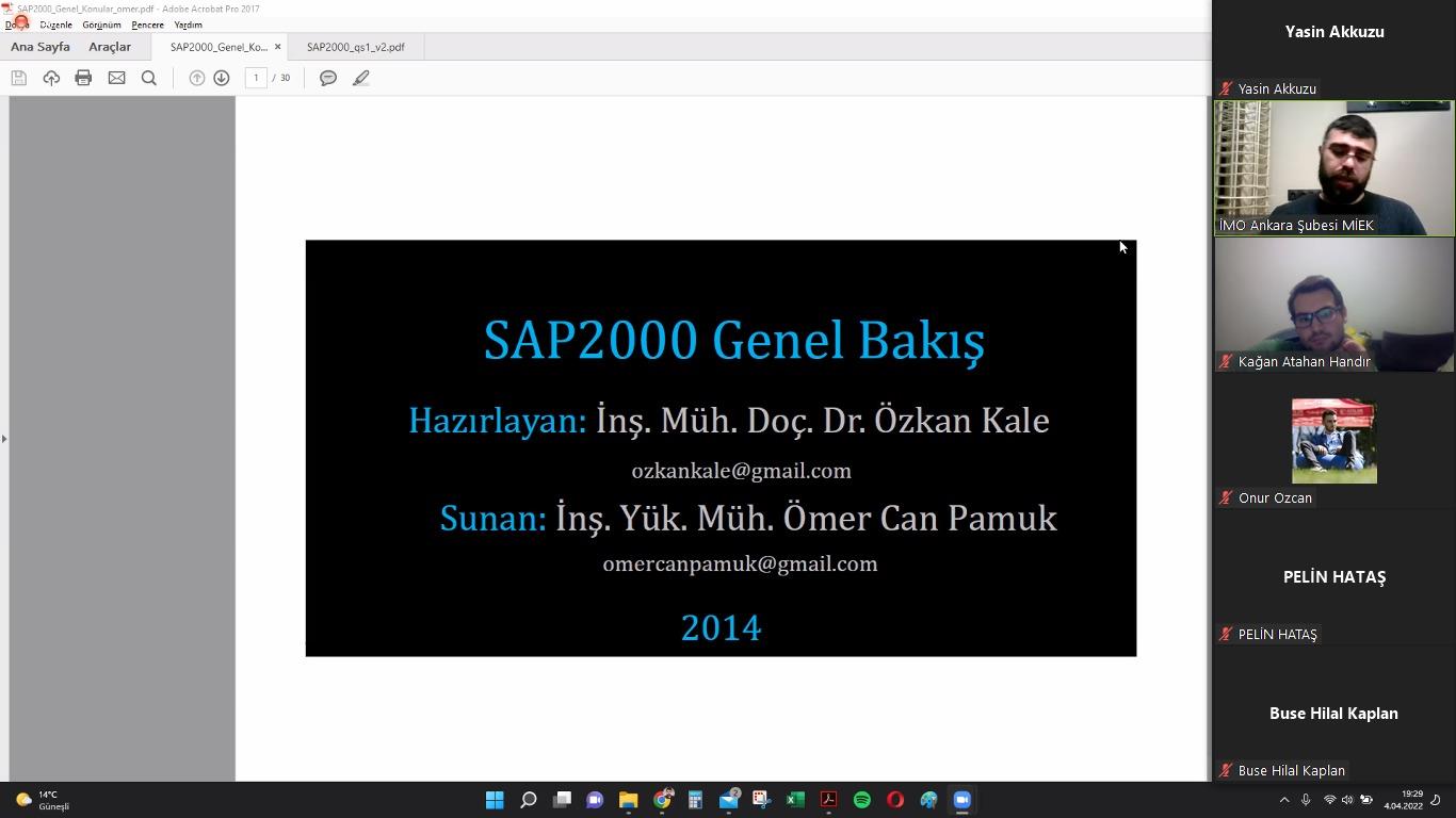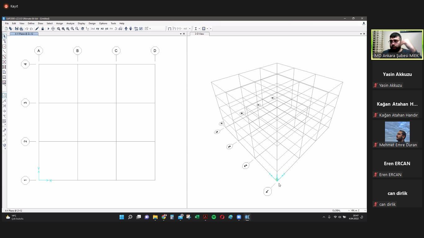 İMO Ankara Şubesi tarafından 04-16 Nisan 2022 tarihleri arasında hibrit eğitim modeliyle genç-İMO üyelerine özel SAP2000 Temel Seviye Eğitimi düzenlendi