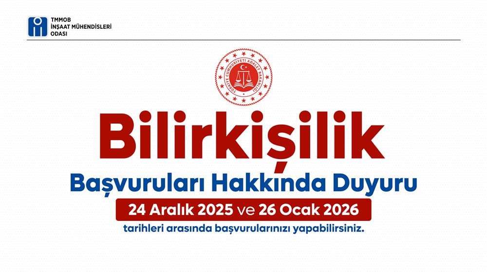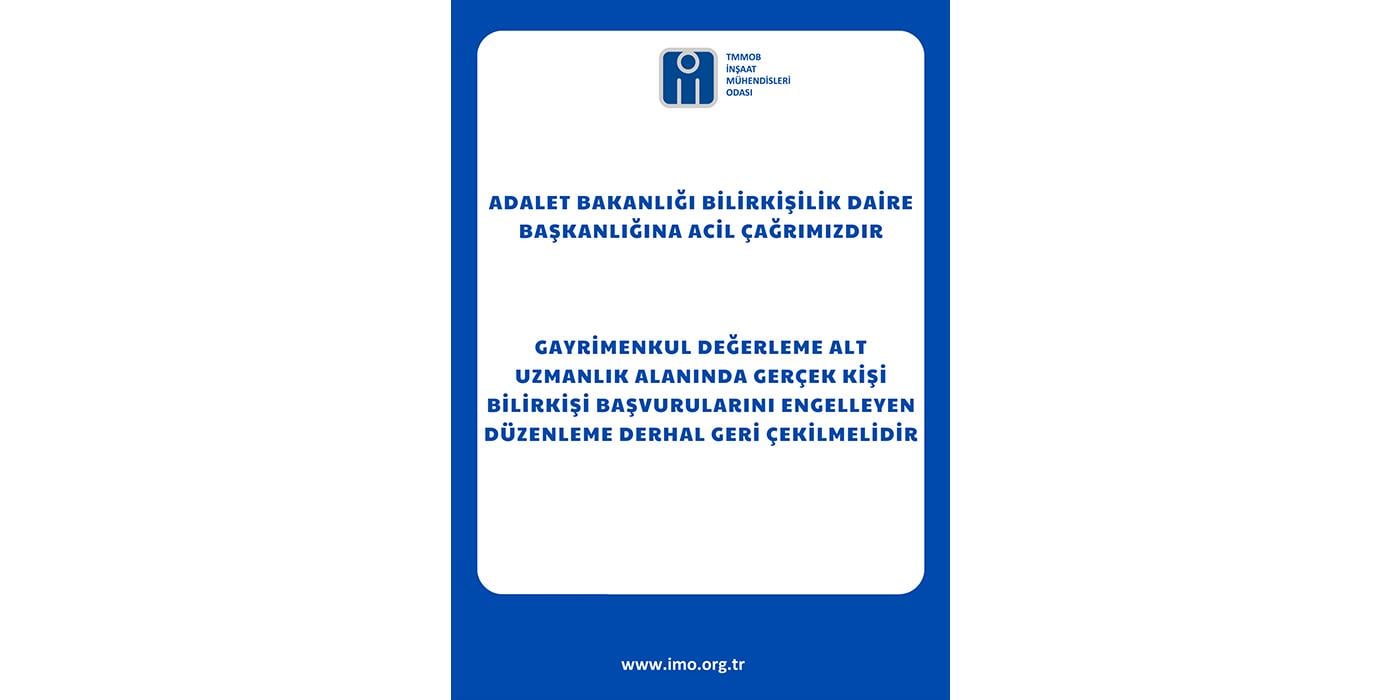 TMMOB İnşaat Mühendisleri Odası Yönetim Kurulunun, gayrimenkul değerleme alt uzmanlık alanında gerçek kişi bilirkişi başvurularını engelleyen düzenleme hakkında 24 Aralık 2025 tarihli açıklaması.