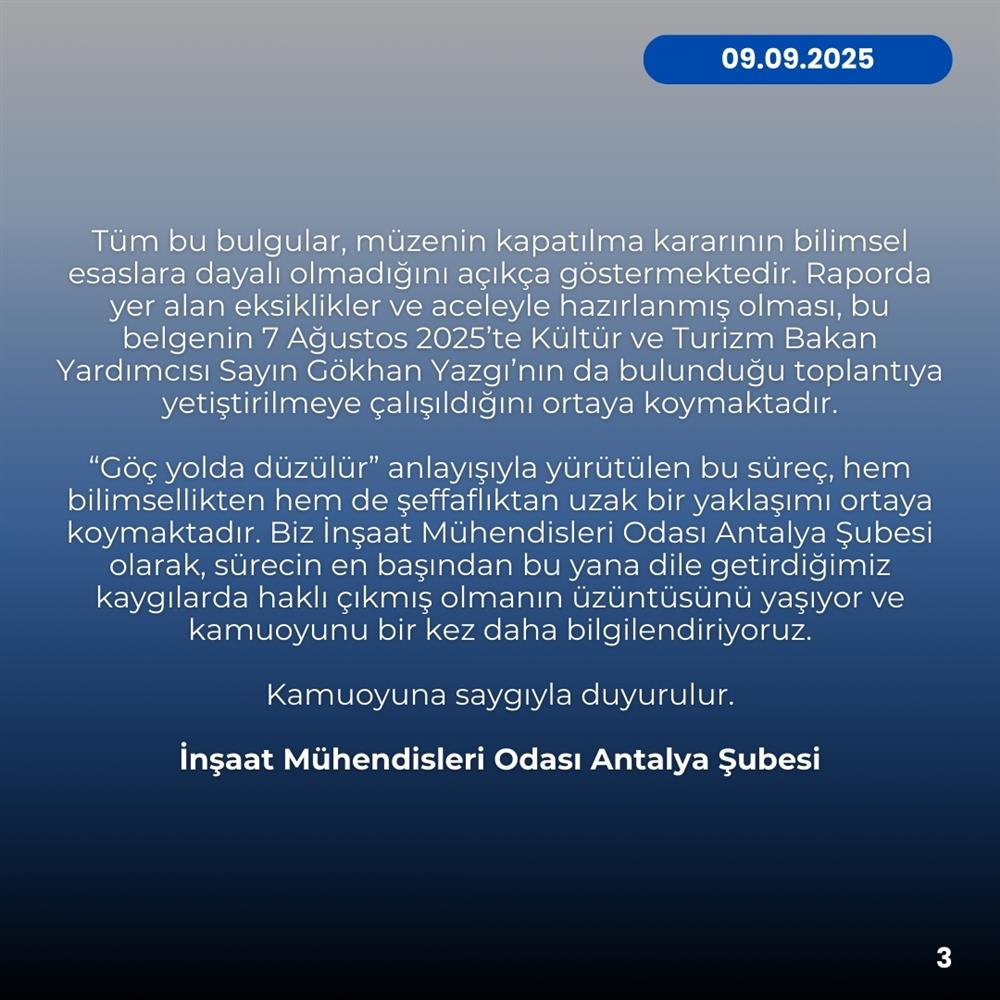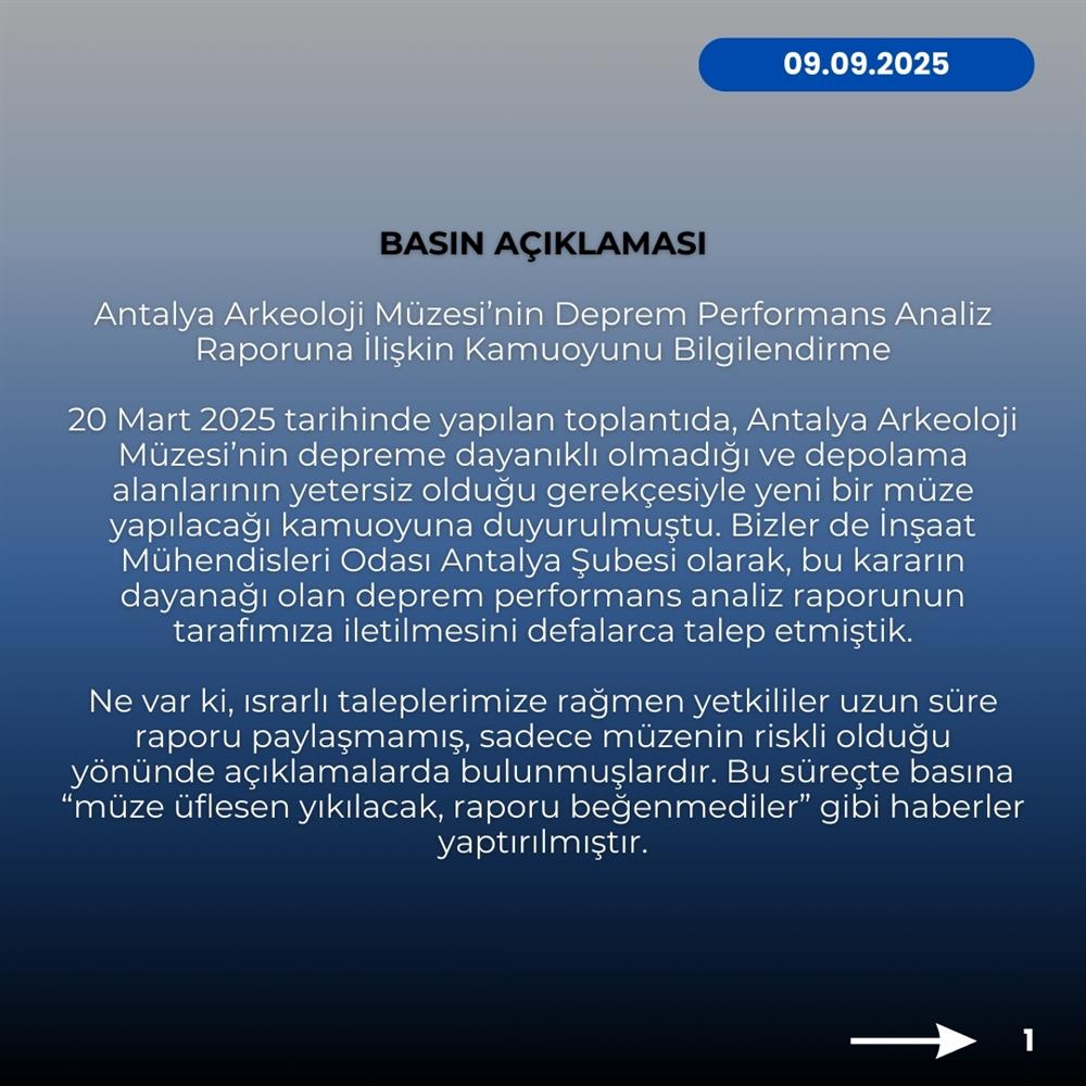 BASIN AÇIKLAMASI ( Antalya Arkeoloji Müzesi Deprem Performans Raporuna İlişkin Açıklama)
