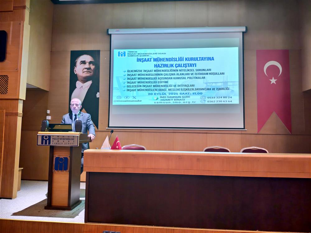 İnşaat Mühendisliği mesleğinin güncel durumunun değerlendirileceği ve sorunlara yönelik çözüm önerilerinin tartışılarak geleceğe dönük politikaların oluşturulmasının hedeflendiği 2. İnşaat Mühendisliği Kurultayına hazırlık amacıyla İMO Samsun Şubesinde 20 Eylül 2025 tarihinde Çalıştay gerçekleştirildi.