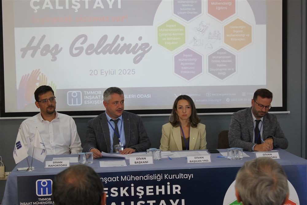 TMMOB İnşaat Mühendisleri Odası tarafından yıl sonunda düzenlenecek olan İkinci İnşaat Mühendisliği Kurultayı’na hazırlık kapsamında üyelerimizin görüş ve önerilerini doğrudan kurultaya taşımak amacıyla Eskişehir Çalıştayı 20 Eylül 2025 tarihinde Şube binasında gerçekleştirildi.