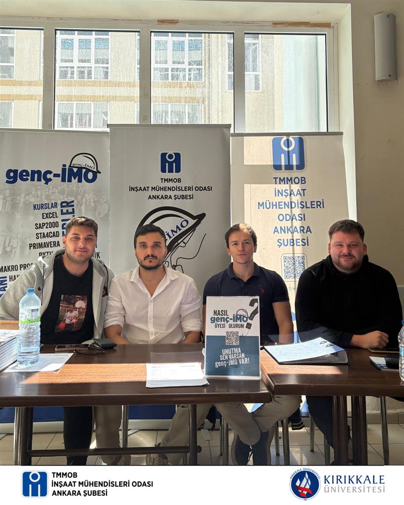 İMO’nun gençlik yapılanması olan genç-İMO hakkında bilgi vermek ve yeni üye kayıtları almak amacıyla üniversitelerde sürdürdüğümüz stant çalışmalarının bir yenisi, 22 Eylül Pazartesi günü Kırıkkale Üniversitesi’nde gerçekleştirildi.