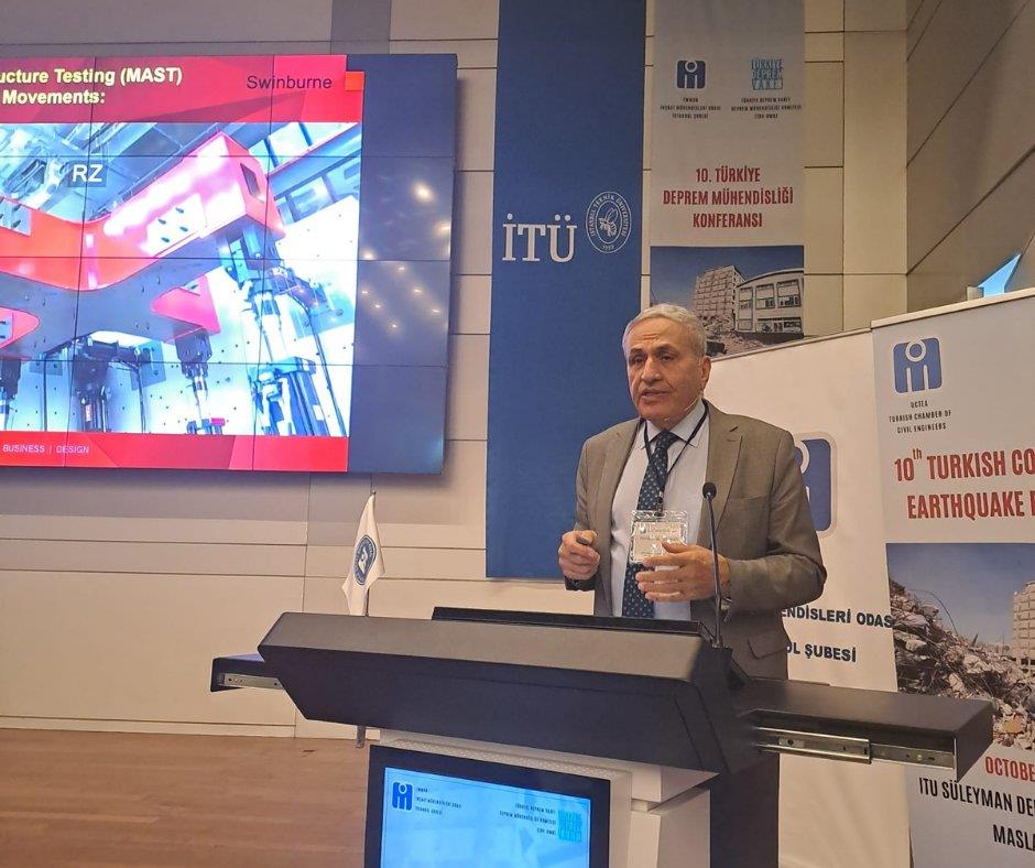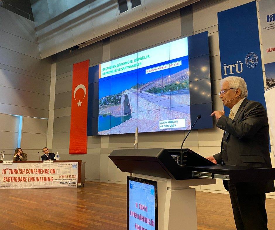 Konferansın 2. Gününün ilk oturumunda Ana Salonda, Beyza Taşkın ve Ercan Yüksel oturum başkanlığında çağrılı konuşmacı Riyadh Al-Mahaidi, “The 15-Year Legacy of the MAST System: Advancing Seismic Resilience through Hybrid Simulation” başlıklı sunumu, çağrılı konuşmacı Murat Saatçioğlu “Use of Transverse Grid Reinforcement in Earthquake Resistant Structural Elements” başlıklı sunumu, Ustalarımızdan Polat Gülkan “Betonarme Yapılar İçin Düktilite Tek Başına Bir Çare Değildir” ve Altok Kurşun “Geçmişten Günümüze Köprüler, Depremler ve Şartnameler” başlıklı sunumunu yaptı.