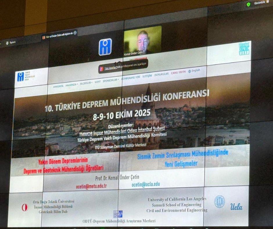 Konferans, 8. Oturumda Ana Salonda, Recep İyisan’ın oturum başkanlığında, çağrılı konuşmacı Kemal Önder Çetin’in, “Lessons offered by the 2023 Kahramanmaraş Earthquake Sequence and Recent Advances in Seismic Soil Liquefaction Engineering” başlıklı sunumu ile devam etti.