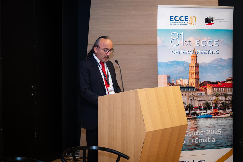 Avrupa İnşaat Mühendisleri Konseyi'nin (ECCE) 81. Genel Toplantısı, 9-11 Ekim 2025 tarihleri arasında, Hırvatistan İnşaat Mühendisleri Odası'nın (HKIG) ev sahipliğinde, Split şehrinde gerçekleştirildi. Toplantıya Odamız adına Yönetim Kurulu Sekreter Üyesi Bülent Tatlı ve Yönetim Kurulu Üyesi Tansel Önal katıldı.