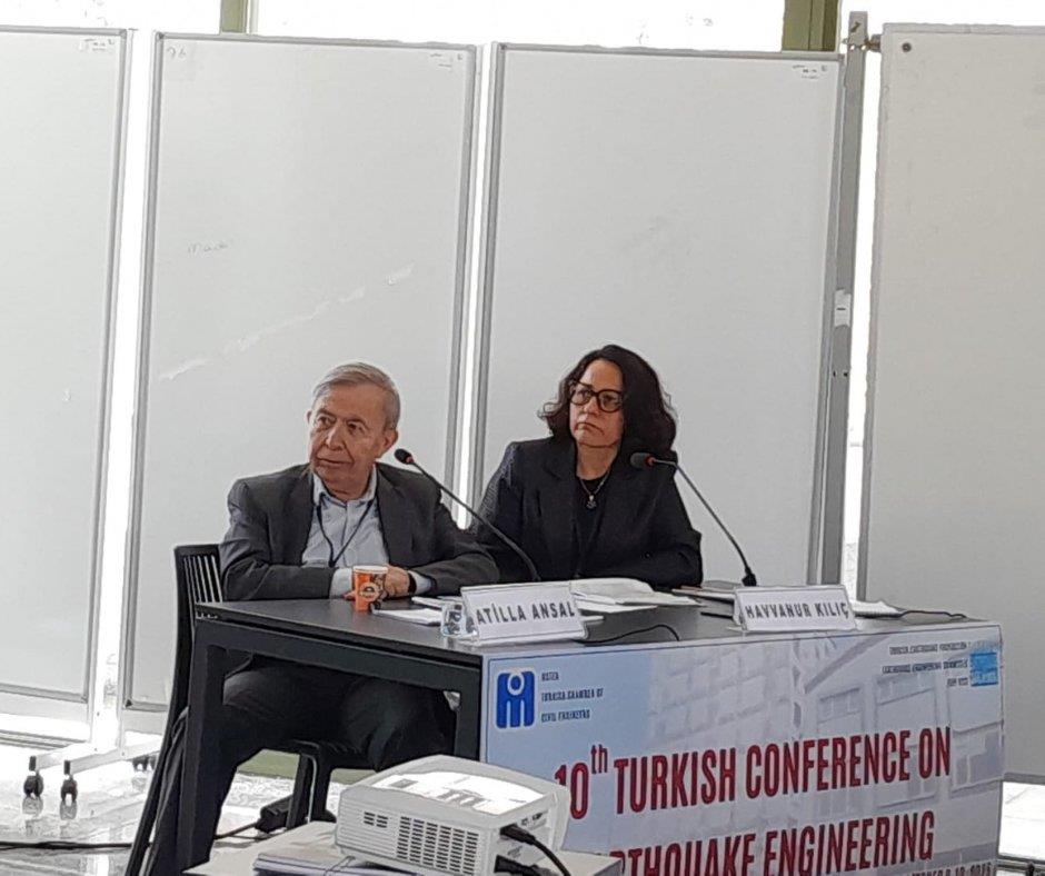 Konferansın 2. Gününün ilk oturumunda Ana Salonda, Beyza Taşkın ve Ercan Yüksel oturum başkanlığında çağrılı konuşmacı Riyadh Al-Mahaidi, “The 15-Year Legacy of the MAST System: Advancing Seismic Resilience through Hybrid Simulation” başlıklı sunumu, çağrılı konuşmacı Murat Saatçioğlu “Use of Transverse Grid Reinforcement in Earthquake Resistant Structural Elements” başlıklı sunumu, Ustalarımızdan Polat Gülkan “Betonarme Yapılar İçin Düktilite Tek Başına Bir Çare Değildir” ve Altok Kurşun “Geçmişten Günümüze Köprüler, Depremler ve Şartnameler” başlıklı sunumunu yaptı.