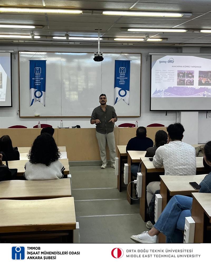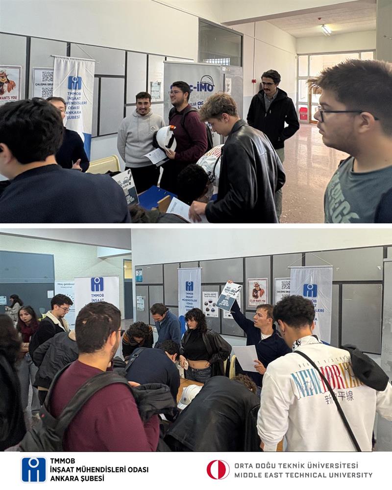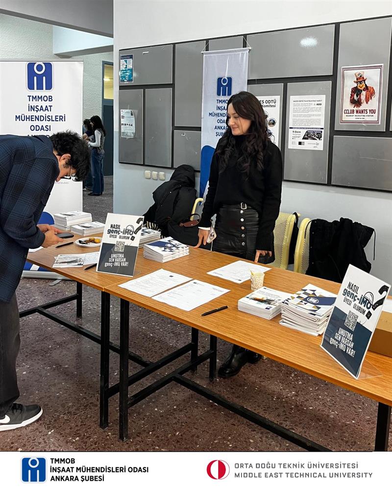 Orta Doğu Teknik Üniversitesi İnşaat Mühendisliği Bölümü’nde düzenlenen “Bölüme Merhaba” etkinliği kapsamında genç-İMO tanıtım standı açıldı. Yeni döneme başlayan birinci sınıf öğrencilerine, İnşaat Mühendisleri Odası ve genç-İMO’nun faaliyetleri hakkında bilgi verildi.