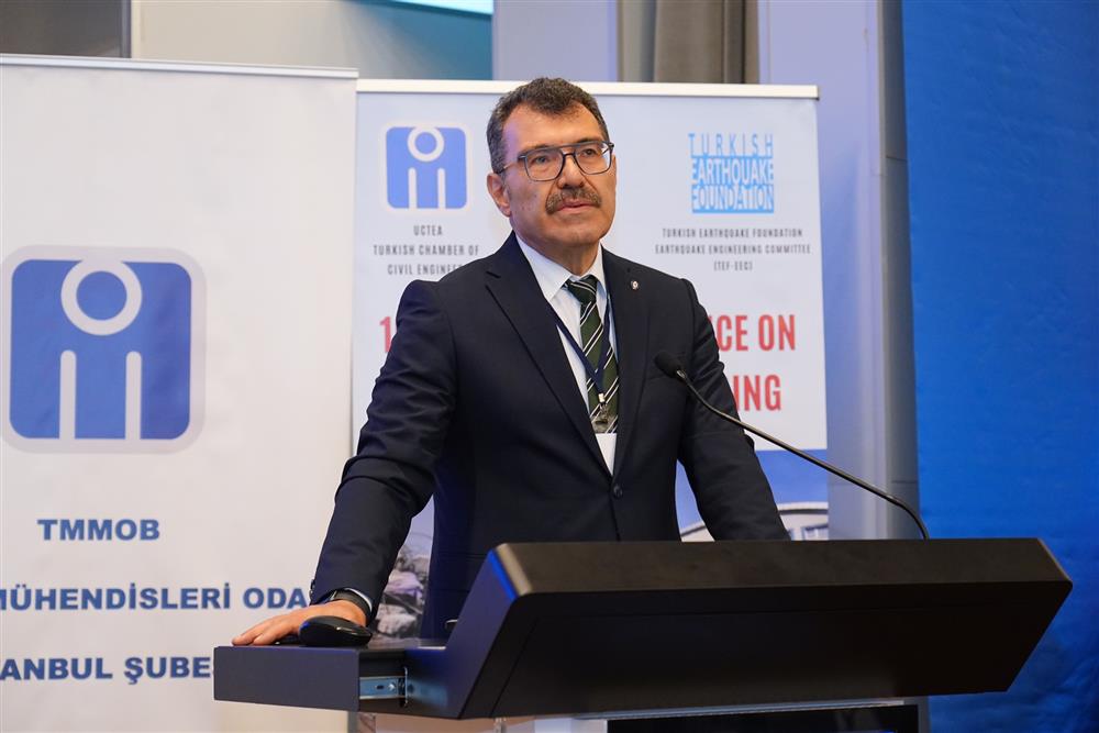 İBB Genel Sekreter Yardımcısı ve Tarihi Kentler Birliği Genel Sekreteri Oktay ÖZEL, “İstanbul binlerce yıllık geçmişe sayısız deprem sığdırmış birçok doğa olayı ile başetme mücadelesini sürdürmüş eşsiz bir kent. 40.000 tescilli yapı, 11 km uzunluğunda sur duvarıyla gök kubbeye yükselen yüzlerce kubbe ve minaresiyle benzersiz bir güzelliğe sahip. Aynı zamanda milyonlarca nüfusu barındıran, plansız, estetikten yoksun, ve her şeyden önemlisi de dayanıksız bir yapı stokuna sahip.” diyerek konuşmasına başladı. Tarihsel olarak kentin yaşadığı büyük depremlere değinen ÖZEL, İstanbul’da 1.200.000’i aşkın bina olduğunu, bu binaların yaklaşık 800.000’in üzerindeki yapı stoku 1999 öncesi inşa edildiğini, bunun 200.000’inin güçlendirilmesi ve dönüştürülmesi gerektiğine dikkat çekti. ÖZEL, “2020’de İTÜ ile birlikte İnşaat Mühendisleri Odası’nın da katkılarıyla binaların hızlı tarama yönteminin geliştirilmesi üzerine bir çalışma başlatıldı. Bugüne kadar yaklaşık 128.000 bina ziyaret edildi.37.000 binanın ölçümleri yapıldı. 37.000 binanın 6840 bina E sınıfı (çok yüksek riskli yapı sınıfı) olarak belirlendi. Bu 6840 bina için kısa süre içinde teşvik edici kira yardımları ile bu binaların yıkımının hızlandırılmasına katkı kondu. 1400 binada muradımıza erdik. 1400 binanın yıkımı sağlandı ve önemli bir kısmının da dönüşüm çalışmaları devam ediyor. Böylelikle yaklaşık 50.000 insanımız depreme karşı güvenli hale geldi.” diyen ÖZEL, ortak akılla ve bilimin ışığında çözülemeyecek hiçbir sorun olmadığına dikkat çekti ve bunun liyakatlı kadrolar, vicdanlı insanların aynı masada toplanabilmesiyle mümkün olduğuna dikkat çekerek konferansa başarılar dileyerek konuşmasını sonlandırdı.