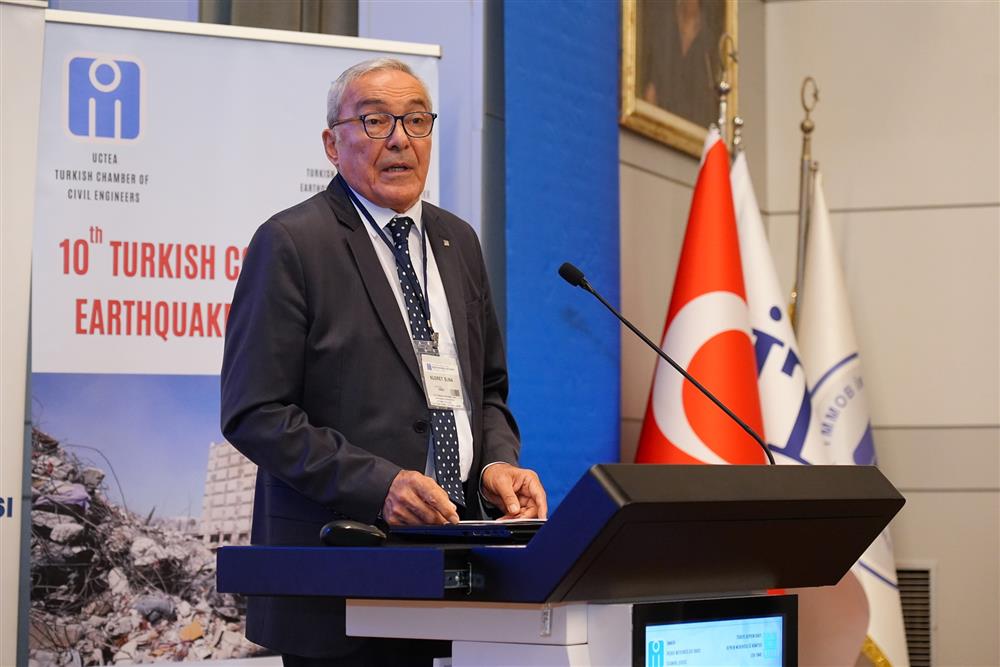 İnşaat Mühendisleri Odası Yönetim Kurulu Başkanı Nusret SUNA konuşmasında, 6 Şubat 2023 Kahramanmaraş depremlerine değindi ve “6 Şubat depremleri, yalnızca son yüzyılın değil, tarihimizin de en yıkıcı felaketlerinden biri olmuş; yapı stokumuzun kırılganlığını, kurum ve kuruluşların depreme karşı hazırlıksızlığının boyutlarını gözler önüne sermiştir.” diyerek, deprem gerçeğinin bilimsel veriler ışığında birçok yönüyle bilindiğini, gerekli önlemlerin alınmaması, bilimsel bilginin gerektiği gibi uygulanmaması nedeniyle bir doğa olayı olan depremin afete dönüştüğüne dikkat çekti. 1999 Marmara Depreminden sonra ülkemizde neredeyse tüm ilgili kuruluşların deprem konusuna ilişkin çalışmalar yaptığını, raporlar hazırlandığını, eylem planları oluşturulduğunu vurgulayan SUNA, bu çalışmaların neredeyse tümünün tozlu raflarda kaldığını ve bunca tecrübeye rağmen kayda değer bir ilerleme sağlanamadığını belirtti ve, “Güvenli yapılaşmanın temeli olan mühendislik hizmetlerinin, hiçbir şekilde göz ardı edilmeden ve eksiksiz biçimde hayata geçirilmesi, toplumumuzun can ve mal güvenliği açısından hayati öneme sahiptir.” dedi.