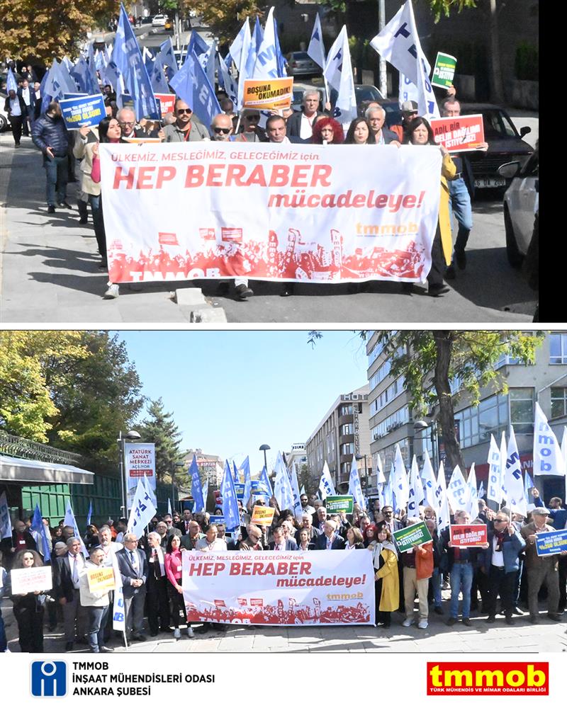Ülkemizdeki ekonomik, toplumsal ve siyasal krizlerin meslektaşlarımıza ve meslek alanlarımıza etkilerinin ve bu bağlamda yaşanan sorunları gündeme getirmek amacıyla MMO Eğitim ve Kültür Merkezi'nden Madenci Anıtı'na yürünerek burada bir basın açıklaması gerçekleştirildi.
