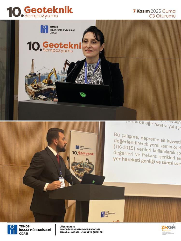 Oturumlarda; zemin iyileştirme yöntemleri, kazı destek sistemleri, mikrobölgeleme, kazıklı temeller, geopolimer uygulamaları, sıvılaşma analizi, laboratuvar ve arazi deneyleri, yenilikçi zemin çözümleri gibi geoteknik mühendisliğinin güncel ve uygulamaya dönük konuları ele alındı.