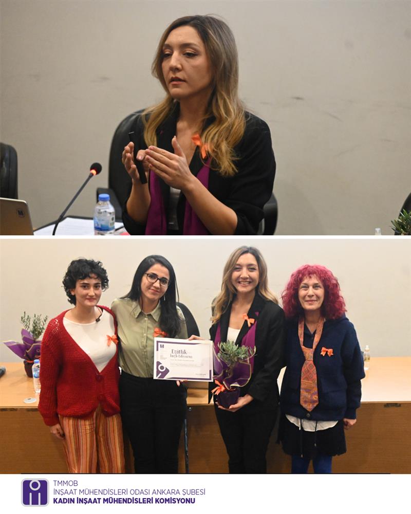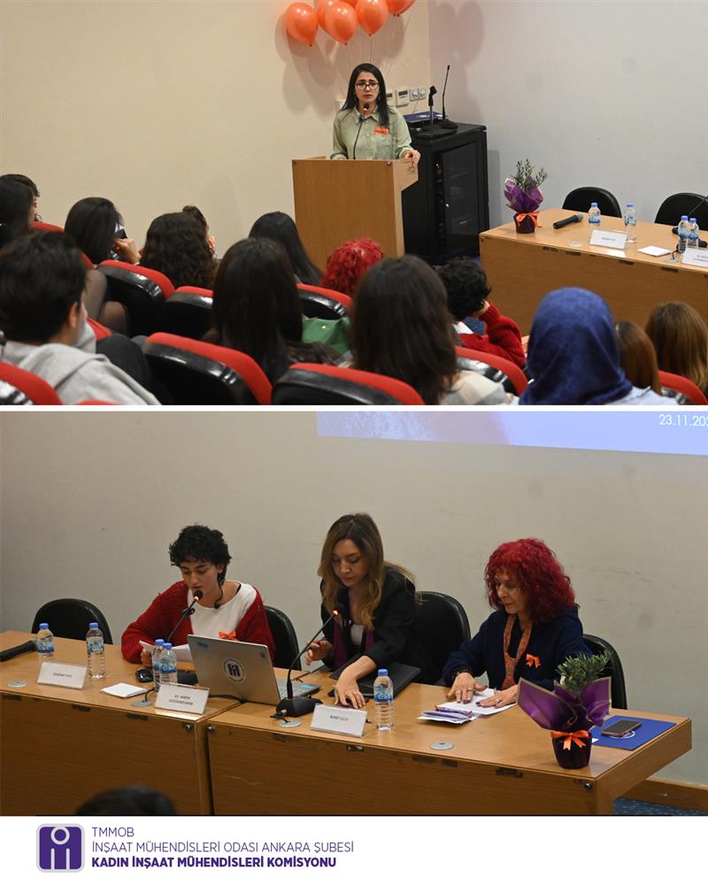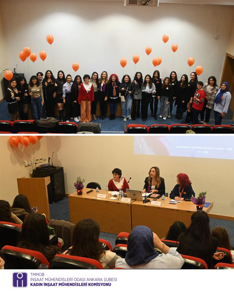 Şubemiz Kadın Komisyonu tarafından, “25 Kasım Kadına Yönelik Şiddete Karşı Mücadele Günü” kapsamında 23 Kasım 2025 Pazar günü İMO Ankara Şubesi Rüştü Özal Salonu’nda “Eşitlik için İnşa Ediyoruz” Kadına Yönelik Şiddete Karşı Hukuk ve Dayanışma Söyleşisi düzenlendi.