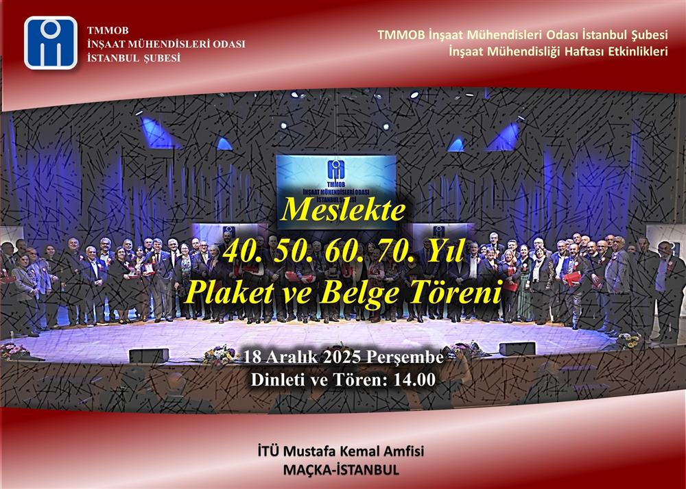 MESLEKTE 40. 50. 60. 70. YIL PLAKET VE BELGE TÖRENI