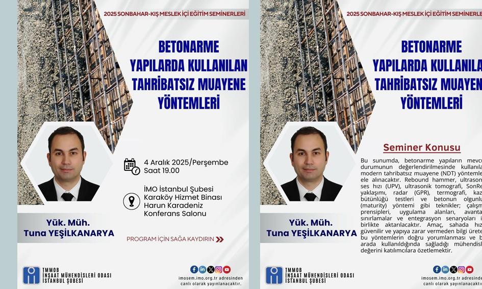 "BETONARME YAPILARDA TAHRİBATSIZ MUAYENE YÖNTEMLERİ" BAŞLIKLI SEMİNERİ - YÜK. MÜH. TUNA YEŞİLKANARYA