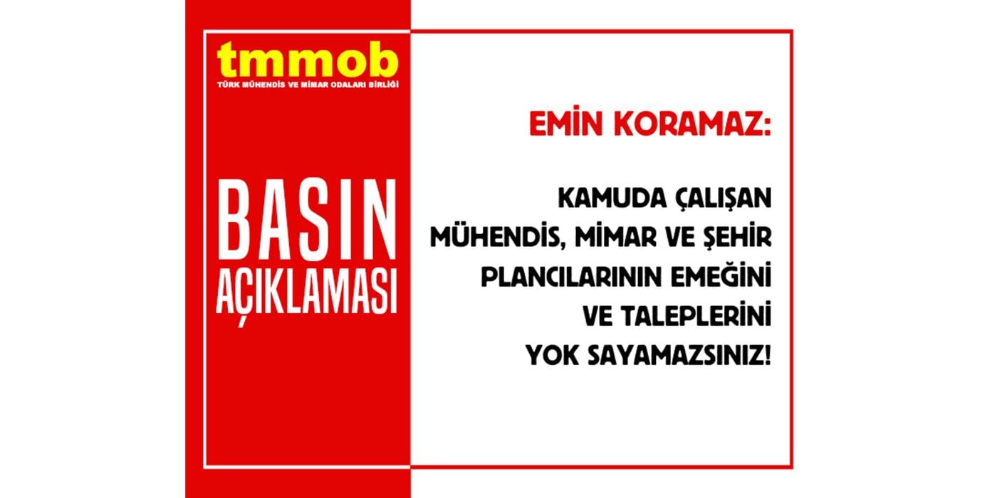 TMMOB Yönetim Kurulu Başkanı Emin Koramaz, 3 Aralık 2025 tarihinde "Kamuda Çalışan Mühendis, Mimar ve Şehir Plancılarının Emeğini ve Taleplerini Yok Sayamazsınız!" başlıklı bir basın açıklaması yaptı.