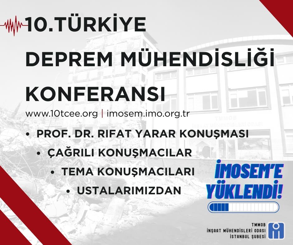 10. TÜRKİYE DEPREM MÜHENDİSLİĞİ KONFERANSI SUNUMLARI İMOSEM'DE YAYIMLANDI. – 19 ARALIK 2025