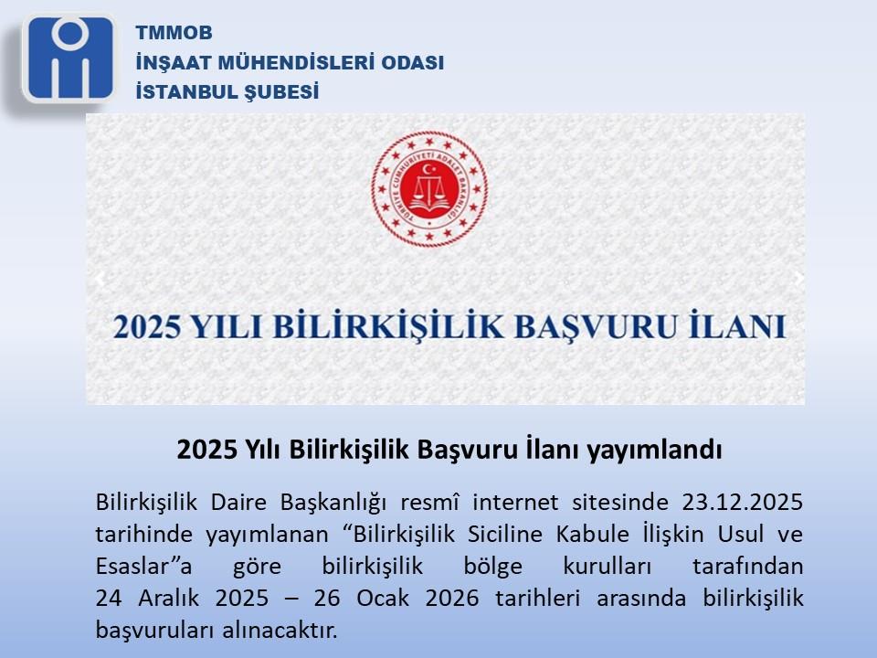 2025 Yılı Bilirkişilik Başvuru İlanı yayımlandı