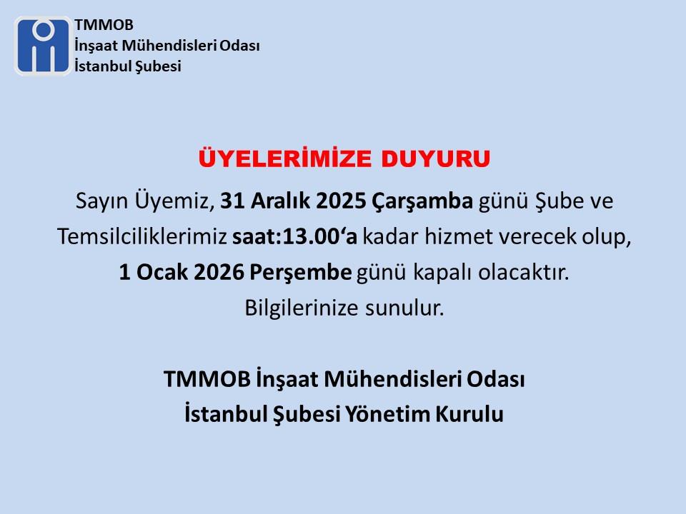 19 Aralık İnşaat Mühendisleri Günü nedeniyle, TMMOB İnşaat Mühendisleri Odası Yönetim Kurulunun 19 Aralık 2025 tarihinde yaptığı açıklama.