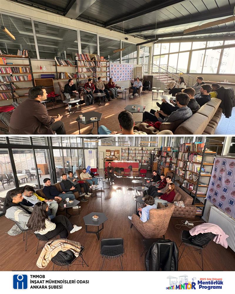 İMO Ankara Şubesi Mentörlük Projesi kapsamında düzenlenen 2025 Güz Dönemi Kasım ayı etkinliği 30 Kasım 2025 Pazar günü Şube binamızda İnş. Müh. Duygu Aktuna’nın katılımıyla gerçekleştirildi.