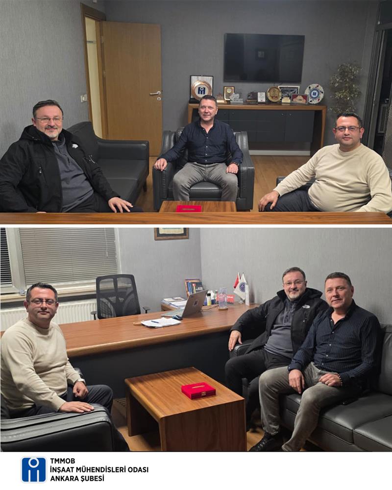 Şubemiz, 11 Aralık 2025 tarihinde İMO Kocaeli Şubesi Yönetim Kurulu Başkanı Ali Akgün ve İMO Kocaeli Şubesi Yönetim Kurulu Başkanı Semih Uçar'ı ağırladı