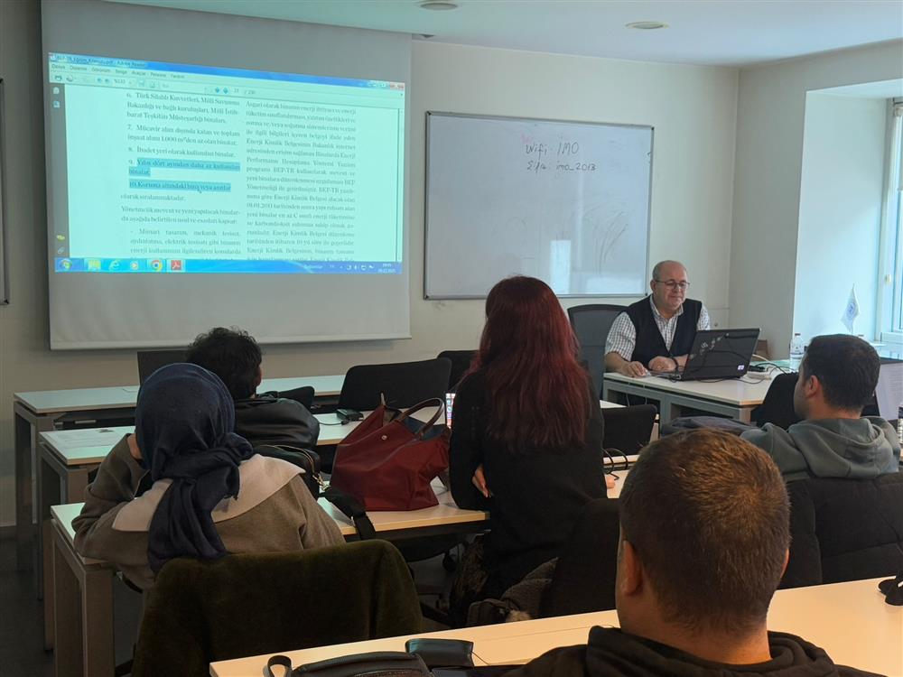 Şubemiz tarafından düzenlenen Enerji Kimlik Belgesi (EKB) Uzmanlığı kursu (2025 - ŞB02) 9-12 Aralık 2025 tarihleri arasında Karaköy Hizmet Binamızda gerçekleşti. Tülay Çalışkan, Mete Yıldız ve Hasan Ünal eğitmenliğinde gerçekleşen kursumuzda Enerji Tüketimleri ve Enerji Verimliliği, Binalarda Enerji Performansı Yönetmeliği, BEP-İS İşletim Sisteminin Tanıtımı ve BEP-BUY programı Kullanılarak Örnek Binaların EKB düzenlenmesine yönelik konulara yer verildi.