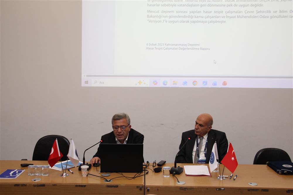 Çalıştayda, Cahit Kocaman, Emrah Süme, Prof. Dr. Alper İlki ve Doç. Dr. Halit Cenan Mertol tarafından İMO (2016) ve AFAD(2025) Hasar Tespit Yönetmelikleriyle ilgili bilgilendirme ve farklılıklarıyla ilgili değerlendirme ile Temel Pirli tarafından Sahada Yaşanan Sorunlar ve Önlemler hakkında sunumlar yapıldı. Katılımcılar yapılan sunumlar üzerine görüş ve değerlendirmelerde bulundu.