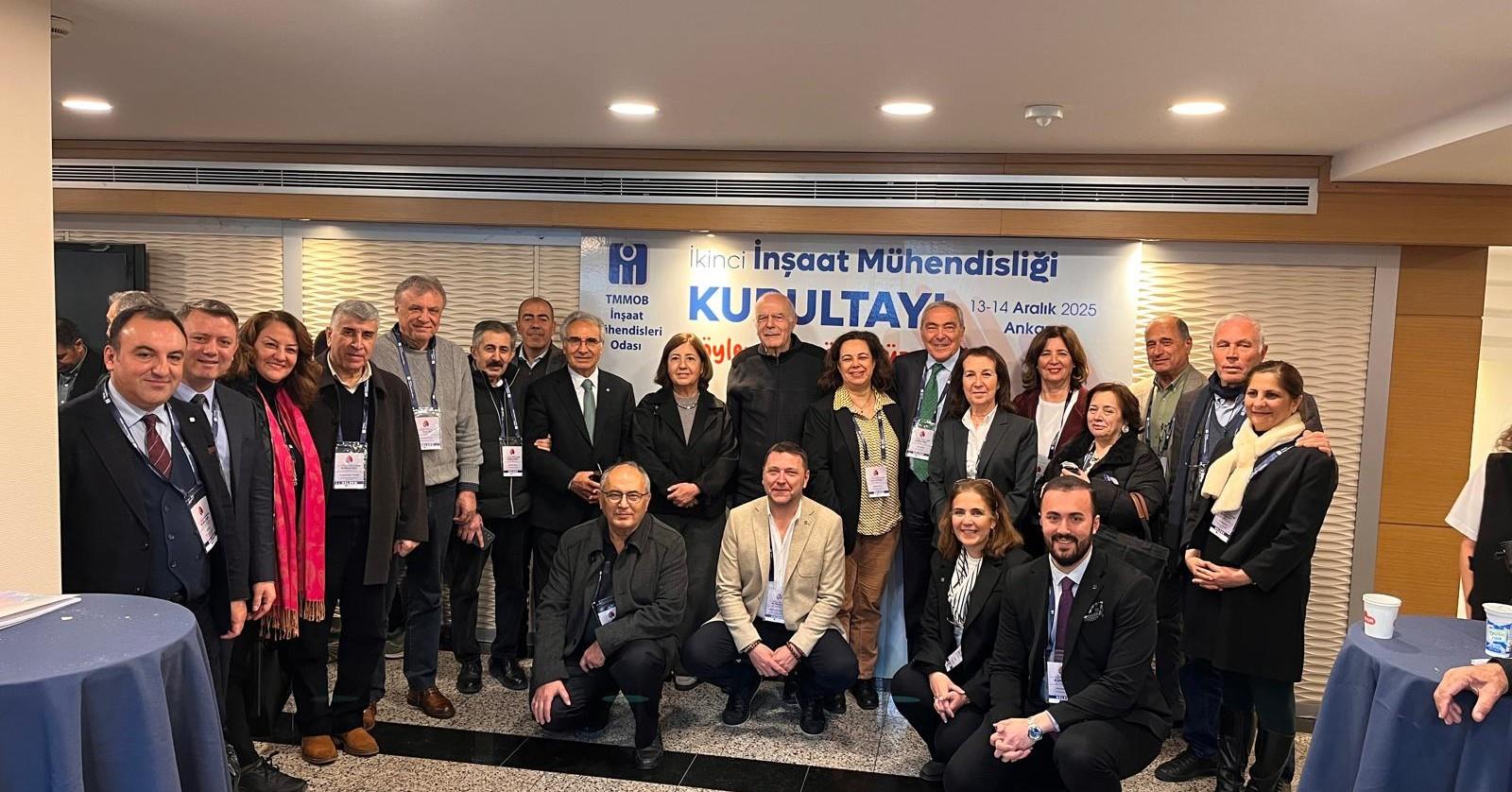 TMMOB İnşaat Mühendisleri Odası tarafından düzenlenen 2. İnşaat Mühendisliği Kurultayı, 13-14 Aralık 2025 tarihlerinde İMO KKM Teoman Öztürk Salonu’nda yapıldı. Türkiye’nin dört bir yanından gelen inşaat mühendislerinin buluştuğu Kurultayın açılışı İMO Yönetim Kurulu Sekreter Üyesi Bülent TATLI tarafından gerçekleştirildi. Kurultayın Divan Başkanlığına Sıdıka Gülsun PARLAR, Başkan Yardımcılıklarına Bengi ATAK ve Ahmet Onur ÖZERGENE, Divan Yazmanlıklarına Eylem GÜMÜŞ YILMAZ ve Atakan Yasin ATAN seçildi. Saygı duruşu ve İstiklal Marşının okunmasının ardından Kurultay Düzenleme Kurulu Başkanı Taner YÜZGEÇ, İMO Yönetim Kurulu Başkanı Nusret Suna ve TMMOB Yönetim Kurulu Başkanı Emin KORAMAZ birer konuşma yaptı. Açılış konuşmalarının ardından Kurultay başlıklarına ilişkin karar taslaklarının görüşülmesine geçildi. Kurultaya katılan delegelerin değerlendirme ve önerileri doğrultusunda toplamda 52 karar taslağı görüşüldü ve oylandı.