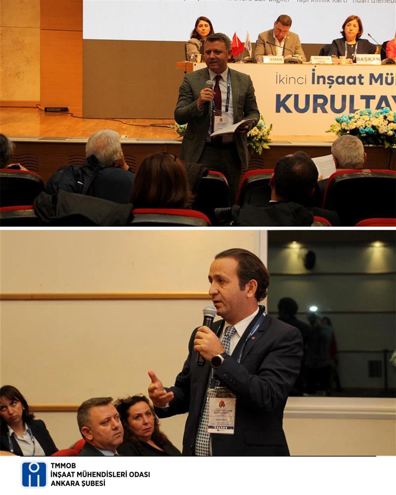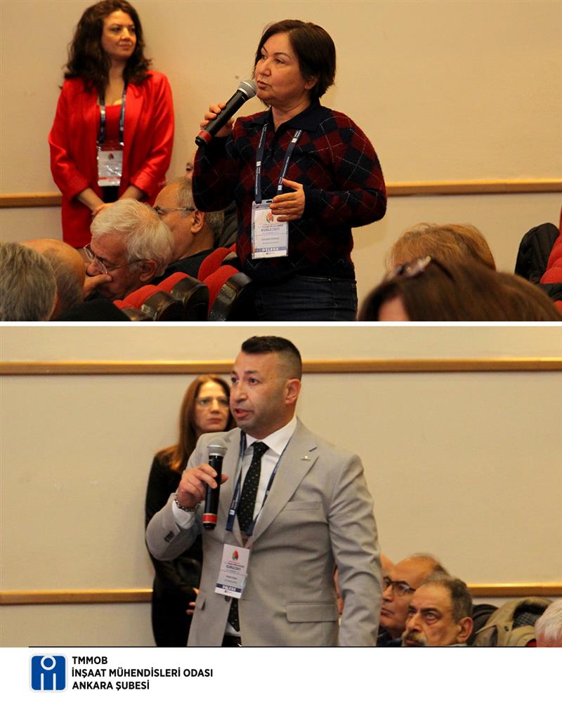 Kurultayda İMO Ankara Şubesi delegeleri Ali İhsan Aktürk, Faik Alper Kanbur, Can Dirlik, Cengiz Kutay Sönmez, Cihan Aktaş, Erdoğan Balcıoğlu, Erhan Özer, Ferhat Temur, Gülsüm Sönmez, Hayati Karatokuş, Hüseyin Nafiz Bayramgil, İhsan Kaş, Işıkhan Güler, Levent Mazılıgüney, Mahir Kaygusuz, Murat Fidan, Mustafa Atmaca, Mustafa Çobanoğlu, Okan Çağrı Bozkurt ve Özgür Kılıç söz alarak görüşlerini dile getirdi.