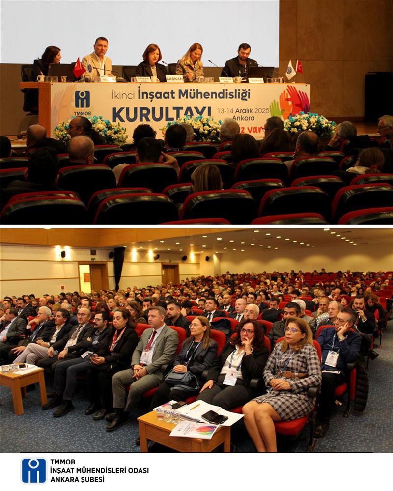 TMMOB İnşaat Mühendisleri Odası tarafından düzenlenen 2. İnşaat Mühendisliği Kurultayı, 13-14 Aralık 2025 tarihlerinde İMO KKM Teoman Öztürk Salonu’nda gerçekleştirildi