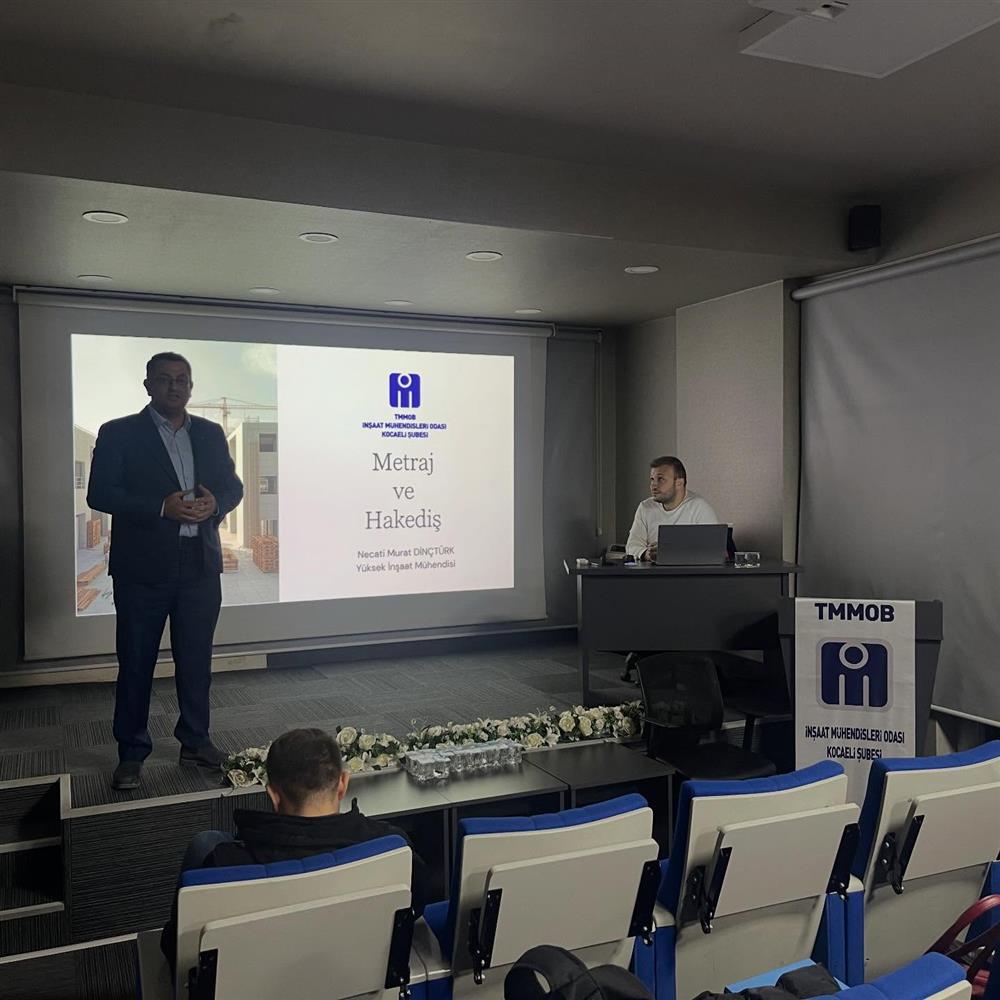 İnşaat Mühendisleri Odası Kocaeli Şubesi olarak düzenlediğimiz “Hakediş ve Metraj Eğitimi” Necati Murat DİNÇTÜRK’ÜN sunumu ile tamamlanmıştır.