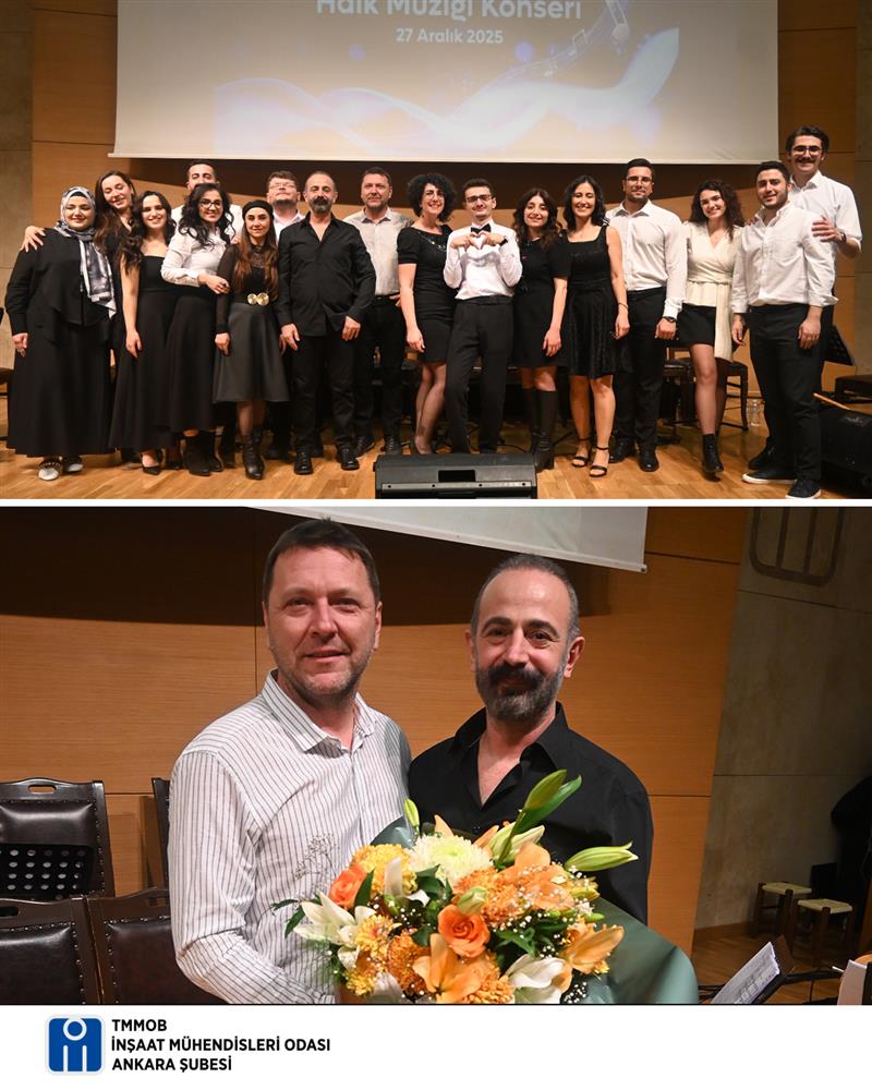 İnşaat Mühendisliği Haftası Etkinlikleri kapsamında Şubemiz tarafından 27 Aralık 2025 Cumartesi günü İMO KKM Teoman Öztürk Salonu'nda “Meslektaşlar Söylüyor Halk Müziği Konseri ve Yeni Yıl Kokteyli” düzenlendi.