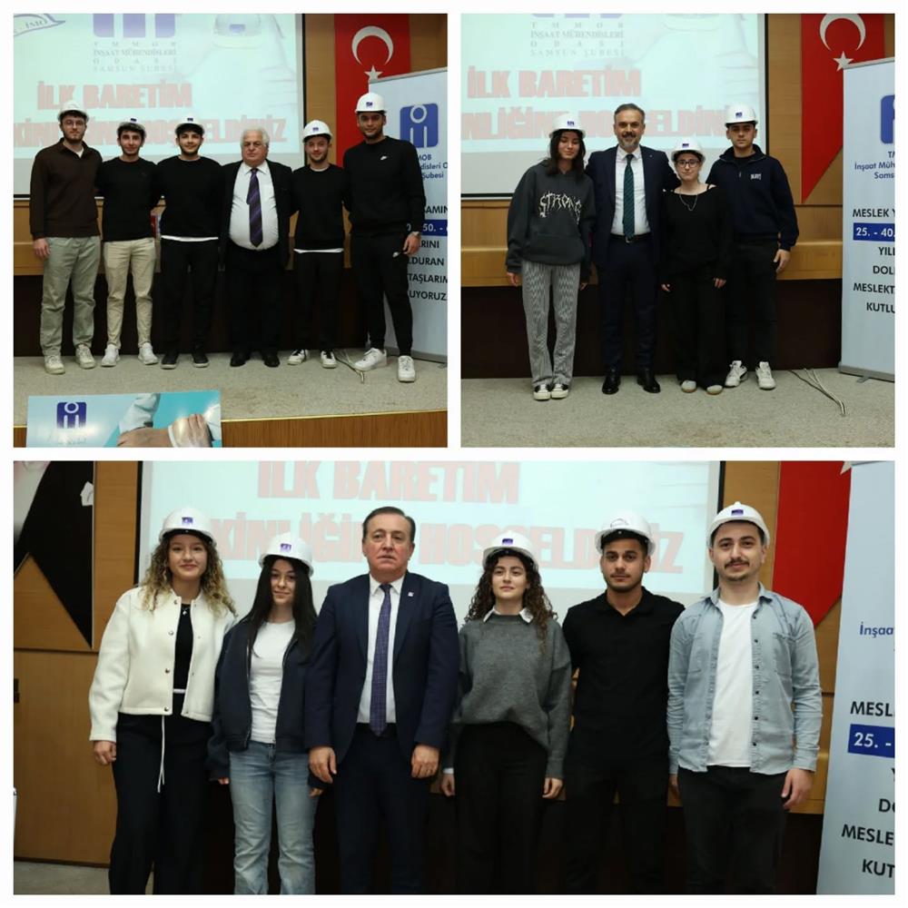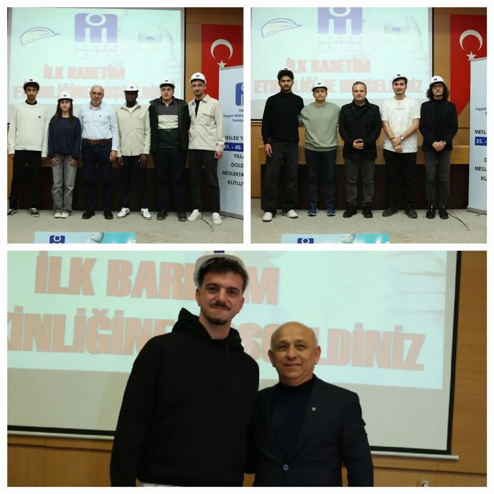 Gençİmo üyesi Ondokuzmayıs Üniversitesi İnşaat Mühendisliği 1.sınıf öğrencilerine yönelik "İlk Baretim" etkinliği gerçekleştirildi. Gençİmo üyesi öğrencilerin meslek büyükleri ile buluştuğu programda, eski Şube Başkanımız Cevat ÖNCÜ'nün moderatörlüğünde meslekte 50. yılını dolduran İrfan YILMAZ, meslekte 40.yılını dolduran Kemal KAYA ve meslekte 25.yılını dolduran İsmail ELMALI mesleki tecrübelerini öğrencilerle paylaştılar ve öğrencilere tavsiyelerde bulundular.