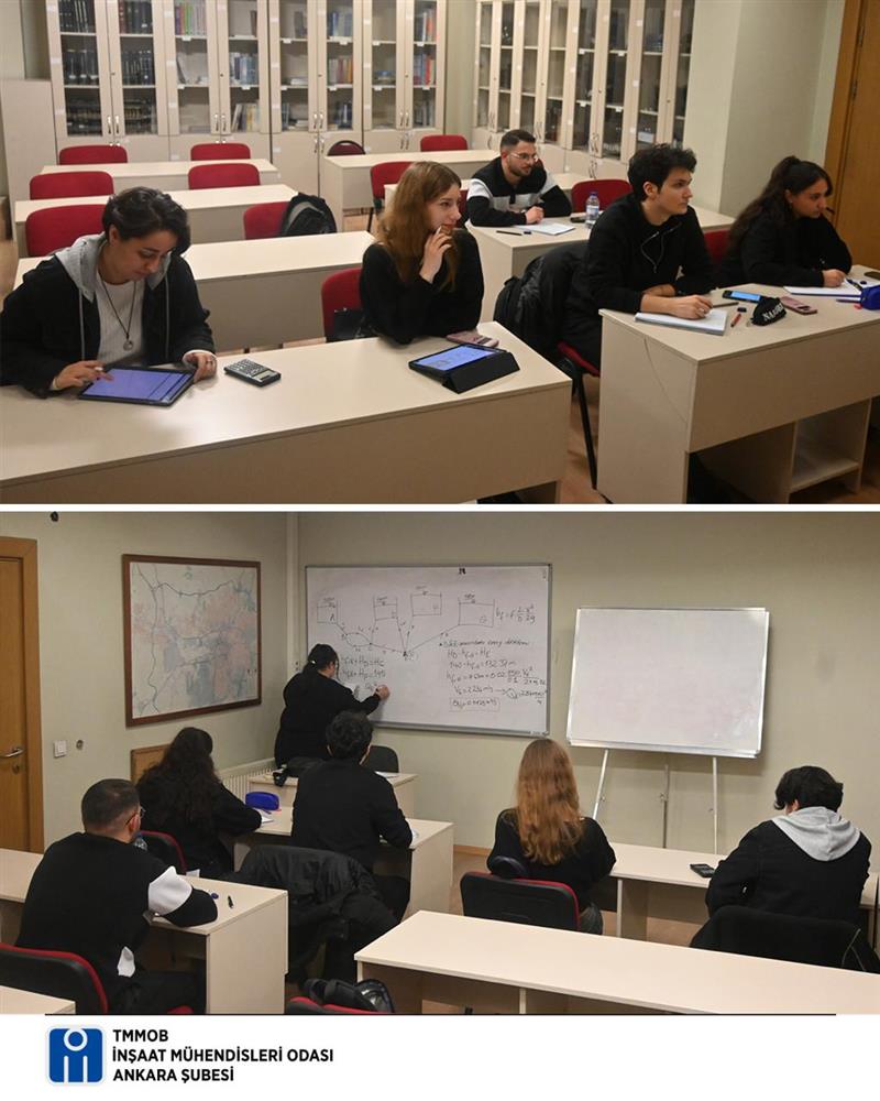 İnşaat Mühendisleri Odası Ankara Şubesi tarafından genç-İMO üyelerine yönelik olarak düzenlenen “Sınava Hazırlık Atölyeleri: Hidromekanik” etkinliğinin ilk grubu 26 Aralık 2025 Cuma günü Şube binamızda tamamlandı