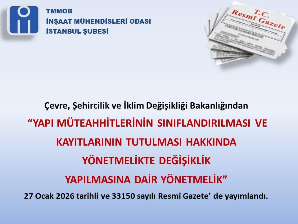 Çevre, Şehircilik ve İklim Değişikliği Bakanlığından “YAPI MÜTEAHHİTLERİNİN SINIFLANDIRILMASI VE KAYITLARININ TUTULMASI HAKKINDA YÖNETMELİKTE DEĞİŞİKLİK YAPILMASINA DAİR YÖNETMELİK” yayımlandı.