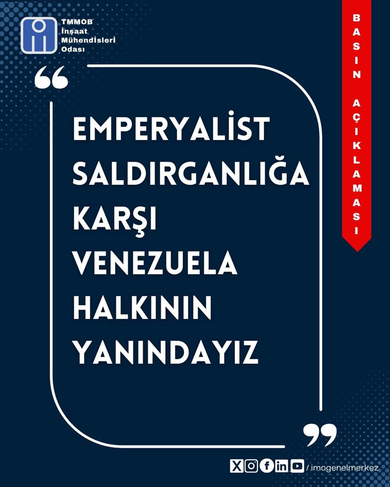 TMMOB İnşaat Mühendisleri Odası Yönetim Kurulunun ABD'nin Venezuela’ya yönelik saldırıları hakkında 3 Ocak 2026 tarihli açıklaması