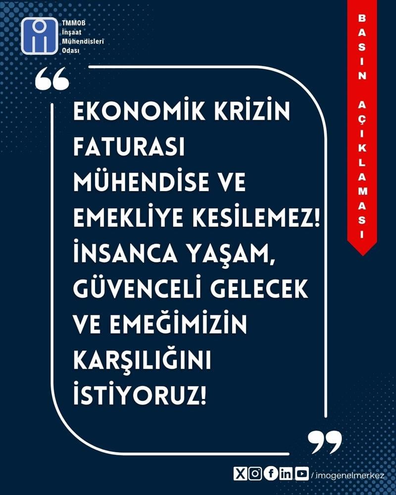 TMMOB İnşaat Mühendisleri Odası olarak emeğiyle geçinen tüm meslektaşlarımız için taleplerimiz nettir: