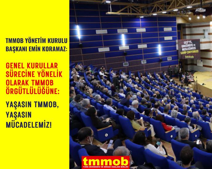 TMMOB Yönetim Kurulu Başkanı Emin Koramaz, 9 Ocak 2026 tarihinde genel kurullar sürecine yönelik olarak TMMOB örgütlülüğüne yönelik bir mesaj yayımladı.