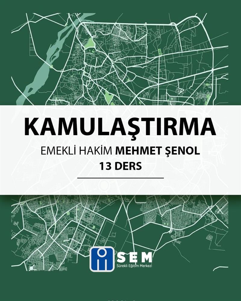 İnşaat Mühendisleri Odası Sürekli Eğitim Merkezi çalışmaları çerçevesinde Hakim Mehmet Şenol tarafından hazırlanan Kamulaştırma Eğitimini satın alarak 65 gün boyunca istediğiniz herhangi bir saatte ya da istediğiniz herhangi bir mekânda bilgisayar ya da cep telefonunuzla izleyebilirsiniz.