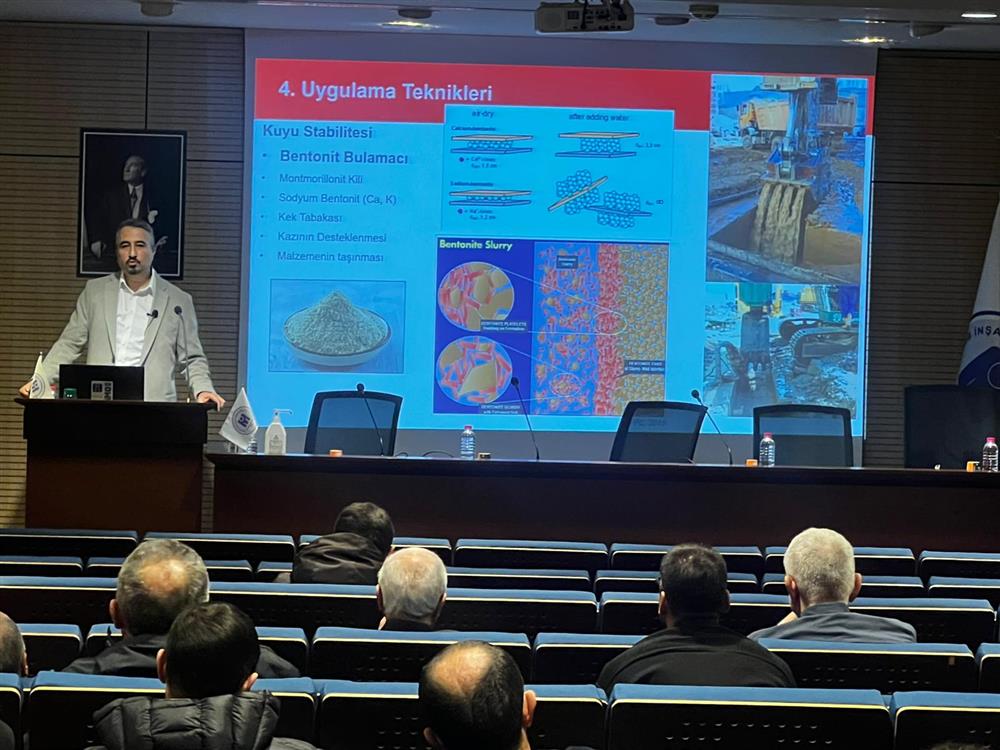 Seminerde, fore kazık veya baret gibi derin temellerin, makine, ekipman ve uygulama teknikleri aktarıldı. Sunum kapsamında şantiye önlemleri, kullanılan ekipman, uygulama detayları, malzeme özellikleri, kalite kontrol ve yükleme deneyleri gibi konular ele alındı.