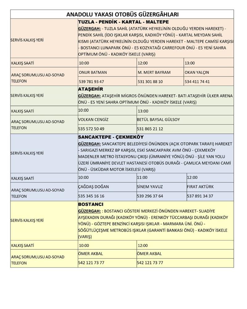 İMO İstanbul Şubesi 50. Dönem Seçimleri Servis Aracı Güzergahları