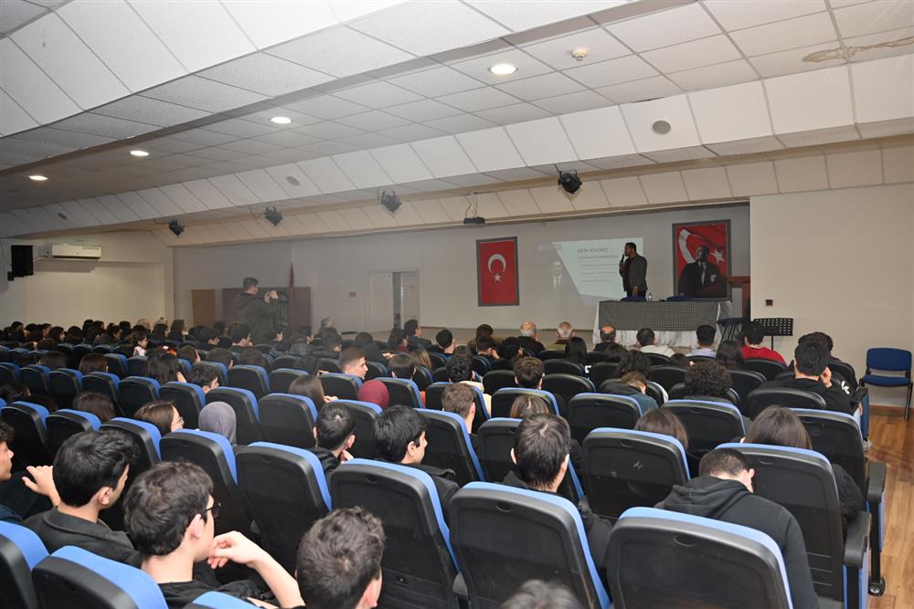 Etkinliğe, Şube Yönetim Kurulu İkinci Başkanımız Sadullah Kabakuşak konuşmacı olarak katıldı. Aynı liseden mezun olmanın gururunu öğrencilerle paylaşan Kabakuşak, eğitim hayatından başlayarak mesleki kariyerine uzanan süreçte edindiği deneyimleri samimi bir dille aktardı.