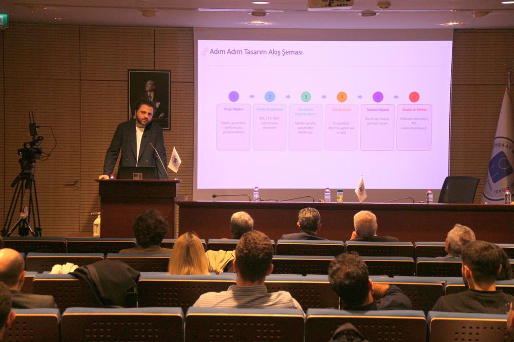 Şube Başkanımız Mustafa Keleş ve Sekreter Üyemiz Osman Ali Korkmaz’ın da katılım sağladığı seminerde; deprem etkisi altında yapıların davranışının, temel sistemi ve zemin koşulları, rijitlik, periyot, sönüm ve iç kuvvet dağılımına etkisi ve yapı–kazık–zemin etkileşimi ele alındı. Pratikte doğru modelleme yapabilmek adına örneklerle anlatıldı.