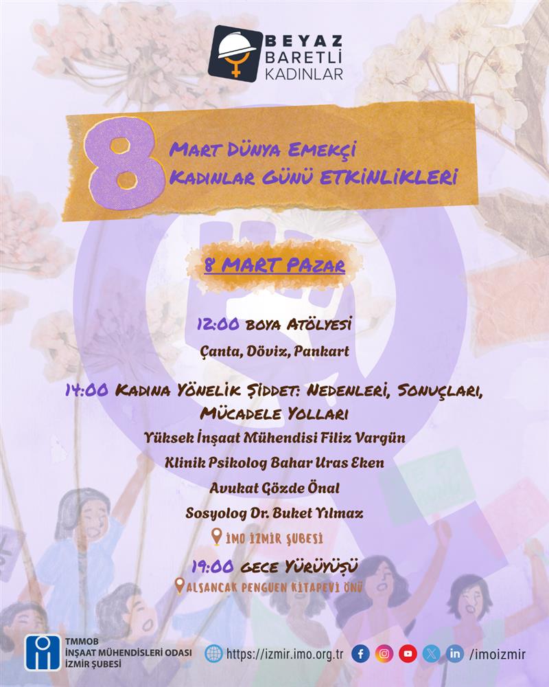 TMMOB İnşaat Mühendisleri Odası Kadın İnşaat Mühendisleri Komisyonunun 8 Mart açıklaması. 7 Mart 2026.