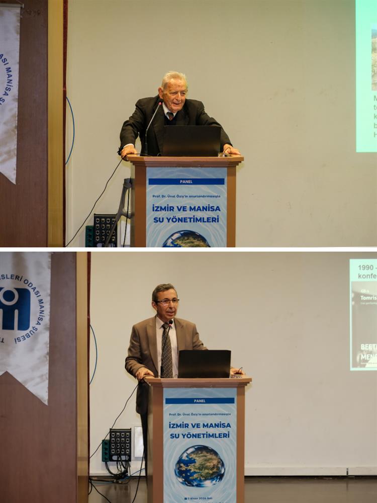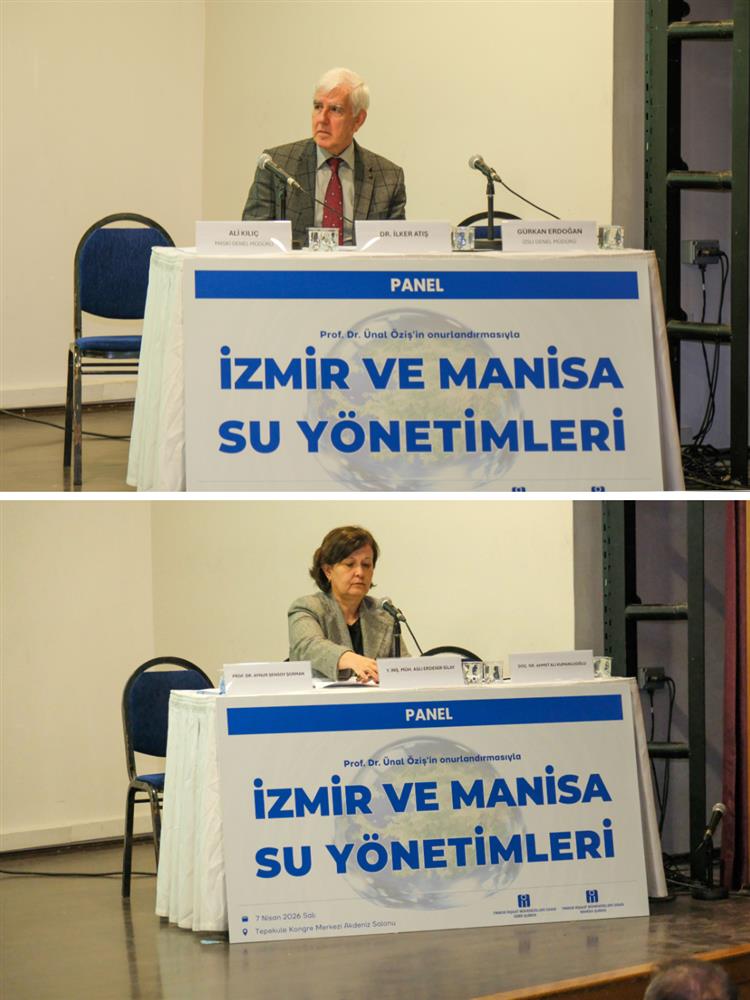 Şubemiz tarafından Prof. Dr. Ünal Öziş’in onurlandırmasıyla birlikte düzenlenen “İzmir ve Manisa Su Yönetimleri” Paneli 7 Nisan 2026 tarihinde Tepekule Kongre Merkezi’nde gerçekleşti. Yoğun katılımla gerçekleşen panelde, İzmir ve Manisa’nın geçmişten günümüze su yapıları, mevcut içme suyu sistemi, kuraklık riskleri ve iklim krizinin etkileri çok yönlü biçimde ele alındı.