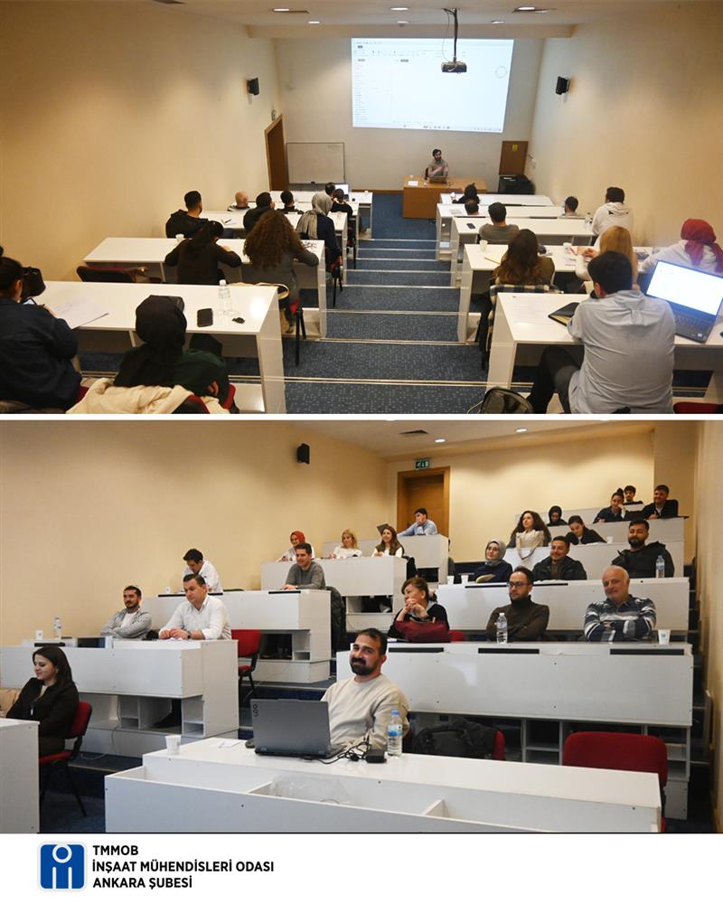 İMO Ankara Şubesi Şube Sekreter Yardımcısı Mehmet Gökçe ve İnş. Müh. Can Dirlik tarafından verilen eğitime 25 kişi katıldı.