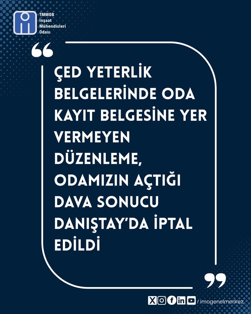 ÇED Yeterlik Belgelerinde Oda Kayıt Belgesine Yer Vermeyen Düzenleme, Odamızın Açtığı Dava Sonucu Danıştay’da İptal Edildi