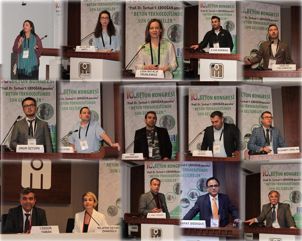 10. Oturum, Prof. Dr. Niyazi Uğur KOÇKAL ve Doç. Dr. Hasan YILDIRIM tarafından yönetildi. Bu oturumda; CEM I and III Based Paste, Mortar and Concrete Products, Manufactured With Fluidised-bed Incinerated Sewage Sludge Ashes, Silis Dumanı İçeren Betonlarda Bileşimin Basınç Dayanımı ve Geçirimlilik Üzerine Etkisi, Calorimetric Investigation of Supplementary Cementitious Material Incorporated Calcium Aluminate Mortars, The Possibility of Developing New Organic-Mineral Additives With the use of Industrial Waste and Their Application in the Production of Hydraulic Concrete ve Azerbaycan`da Üretilen Çimentolarda Kalker ve Volkan Külünün Kullanımı ve Performanslarının Karşılaştırılması başlıklı bildiriler yer aldı.