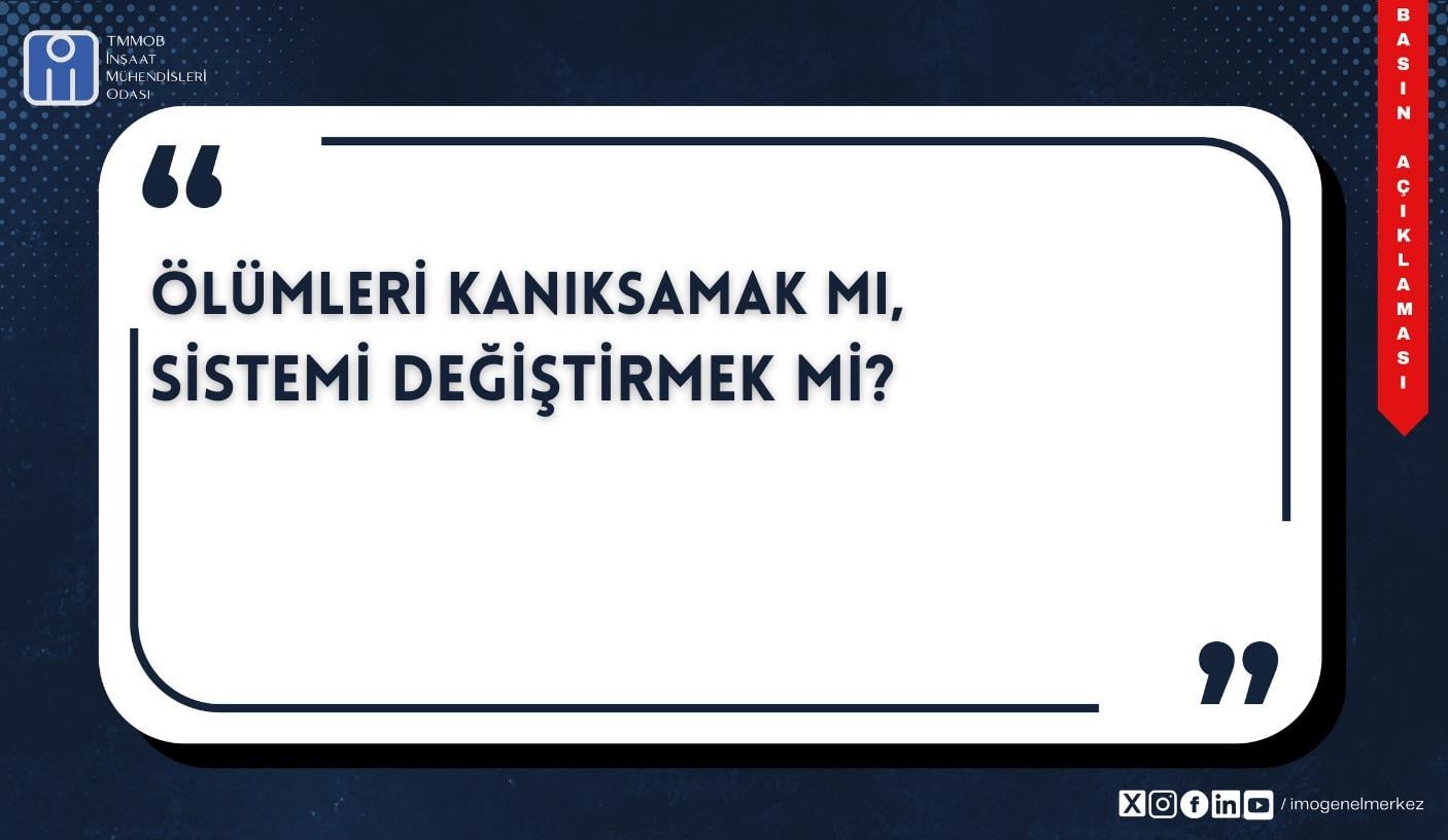 TMMOB İnşaat Mühendisleri Odası Yönetim Kurulunun, 6 Şubat yargı süreçleri hakkında 13 Ocak 2026 tarihinde yaptığı açıklama.