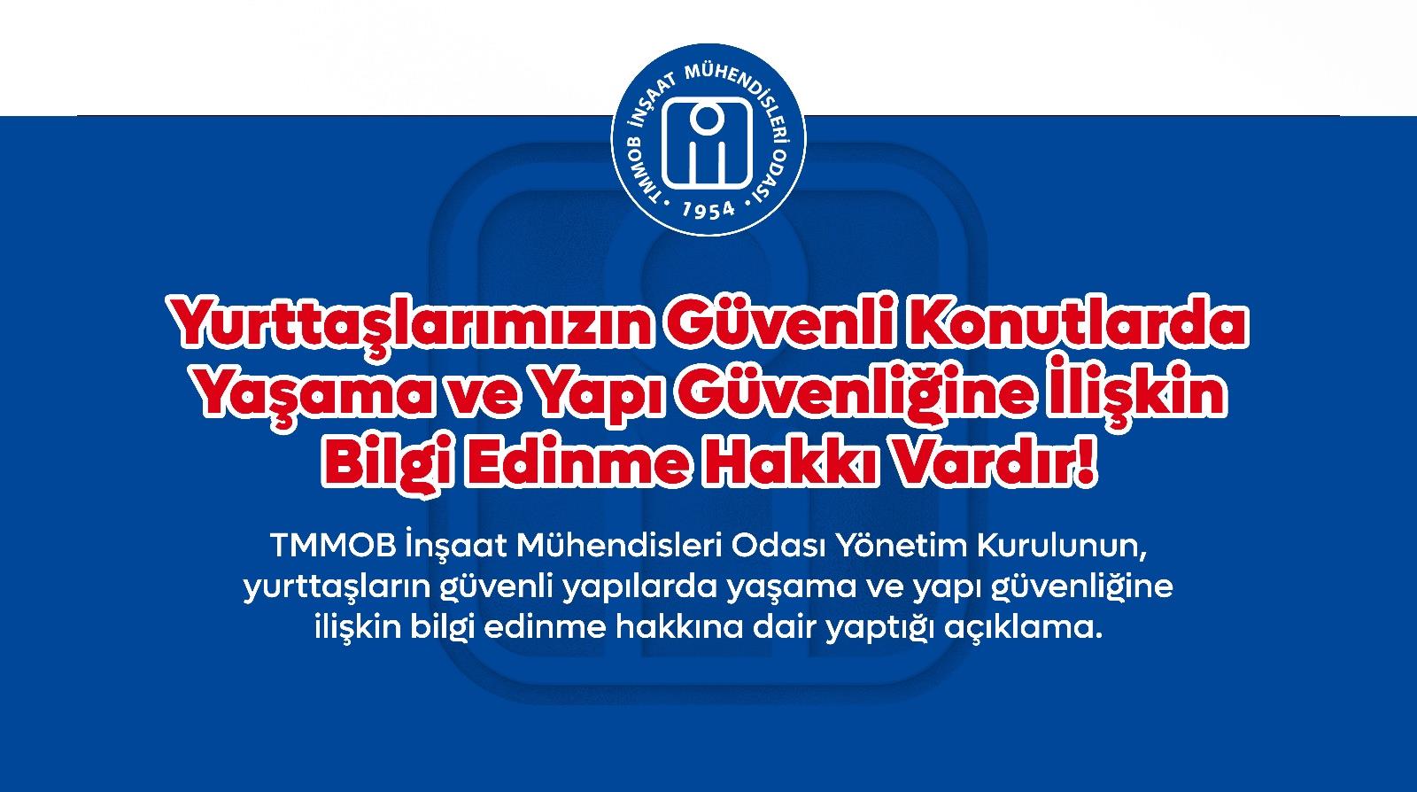Yurttaşlarımızın Güvenli Konutlarda Yaşama ve Yapı Güvenliğine İlişkin Bilgi Edinme Hakkı Vardır!