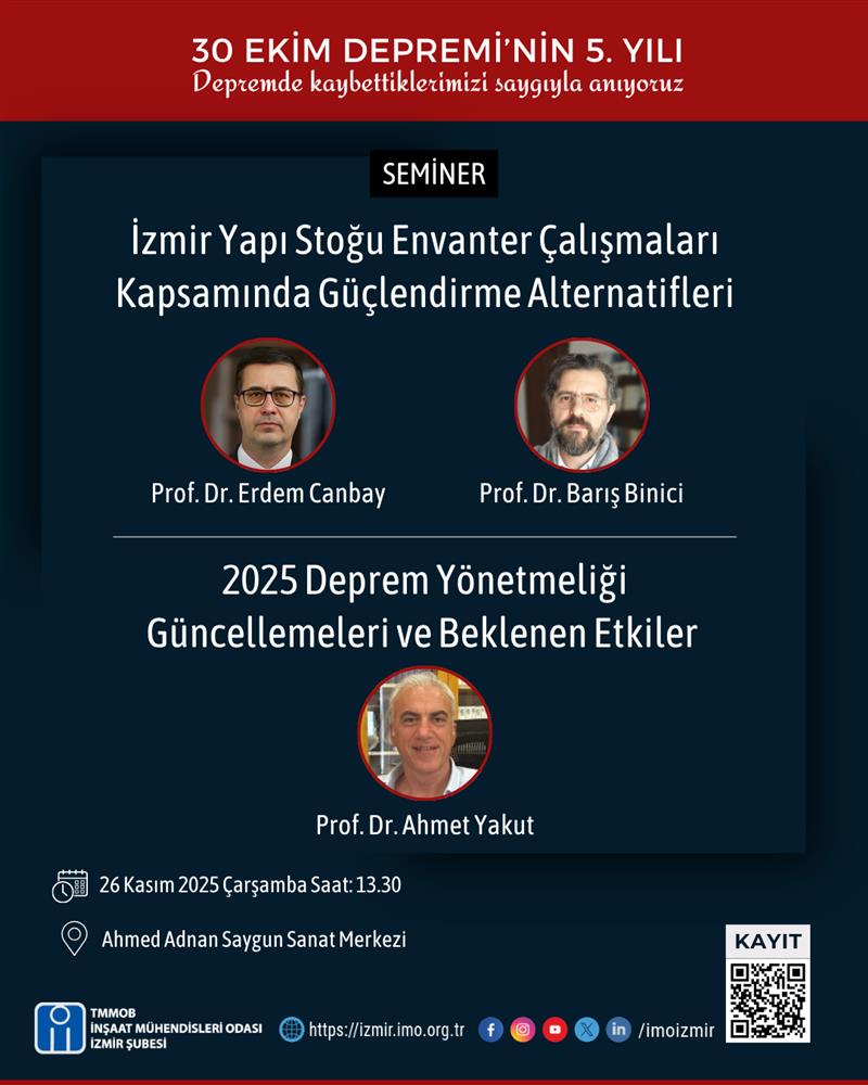 Seminer: İzmir Yapı Stoğu Envanter Çalışmaları Kapsamında Güçlendirme Alternatifleri - 2025 Deprem Yönetmeliği Güncellemeleri ve Beklenen Etkiler